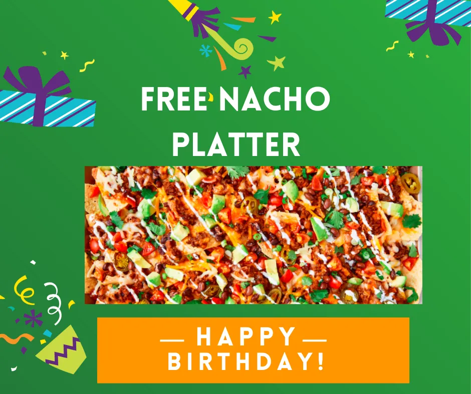 Free large Nacho Platter when you book 9 to 12 people for the birthday party.